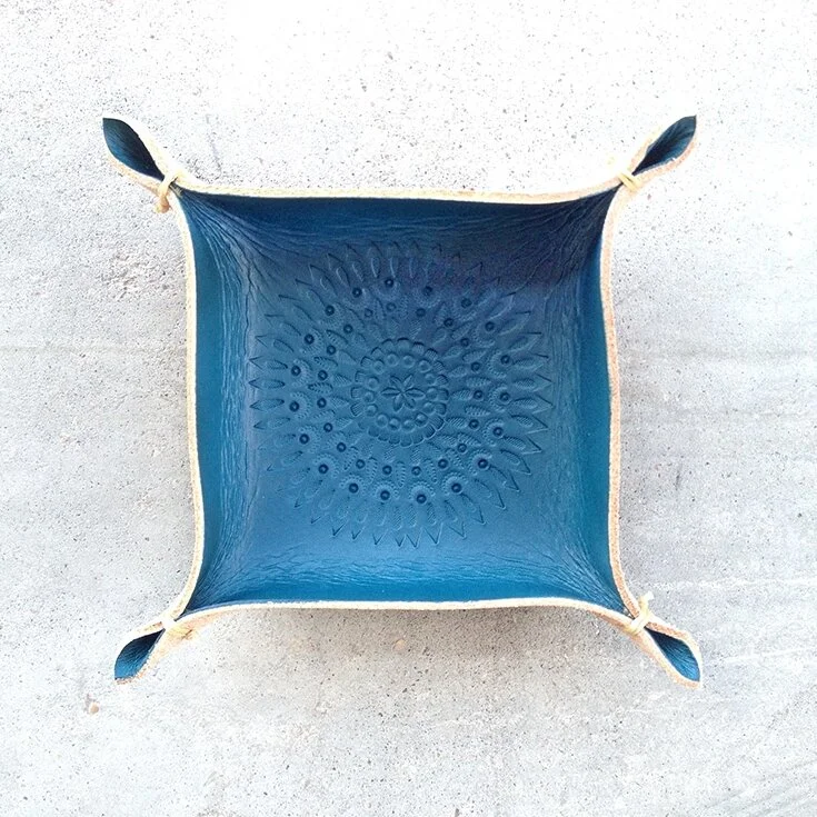 On Wednesday, November 16th, we're returning to Handcraft Studio School at their new location in El Cerrito for a Leather Tray Workshop. If you missed our workshop last year, now's your chance. We'll tool, hand dye, and hand stitch a tray that's perfect for your bedside table or office desk. It'll be a fun evening with drinks and snacks provided, so join us mid-week and learn some new skills!